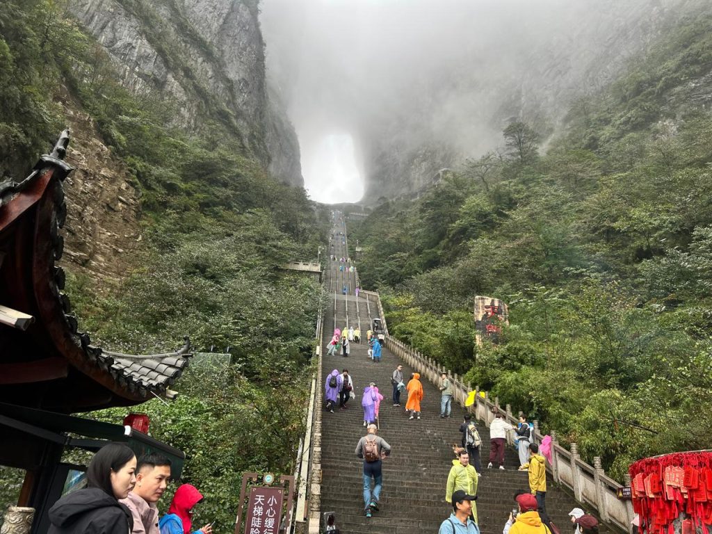 Далее предстоит пройти по живописной лестнице на скале «Тропа небесной лестницы», состоящей из более чем 1200 ступеней, высеченных прямо в скалах и изгибающихся вдоль вертикальных утёсов.